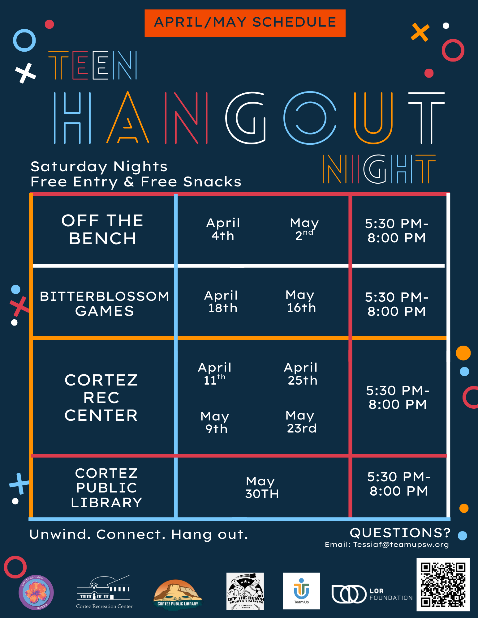 Teen Hangout Nights are made possible by the collaborative work of: